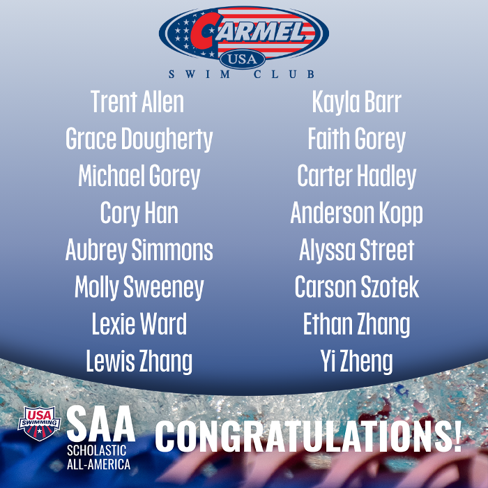 16 Carmel Swim Club Athletes Named 2023-24 USA Swimming Scholastic All-Americans